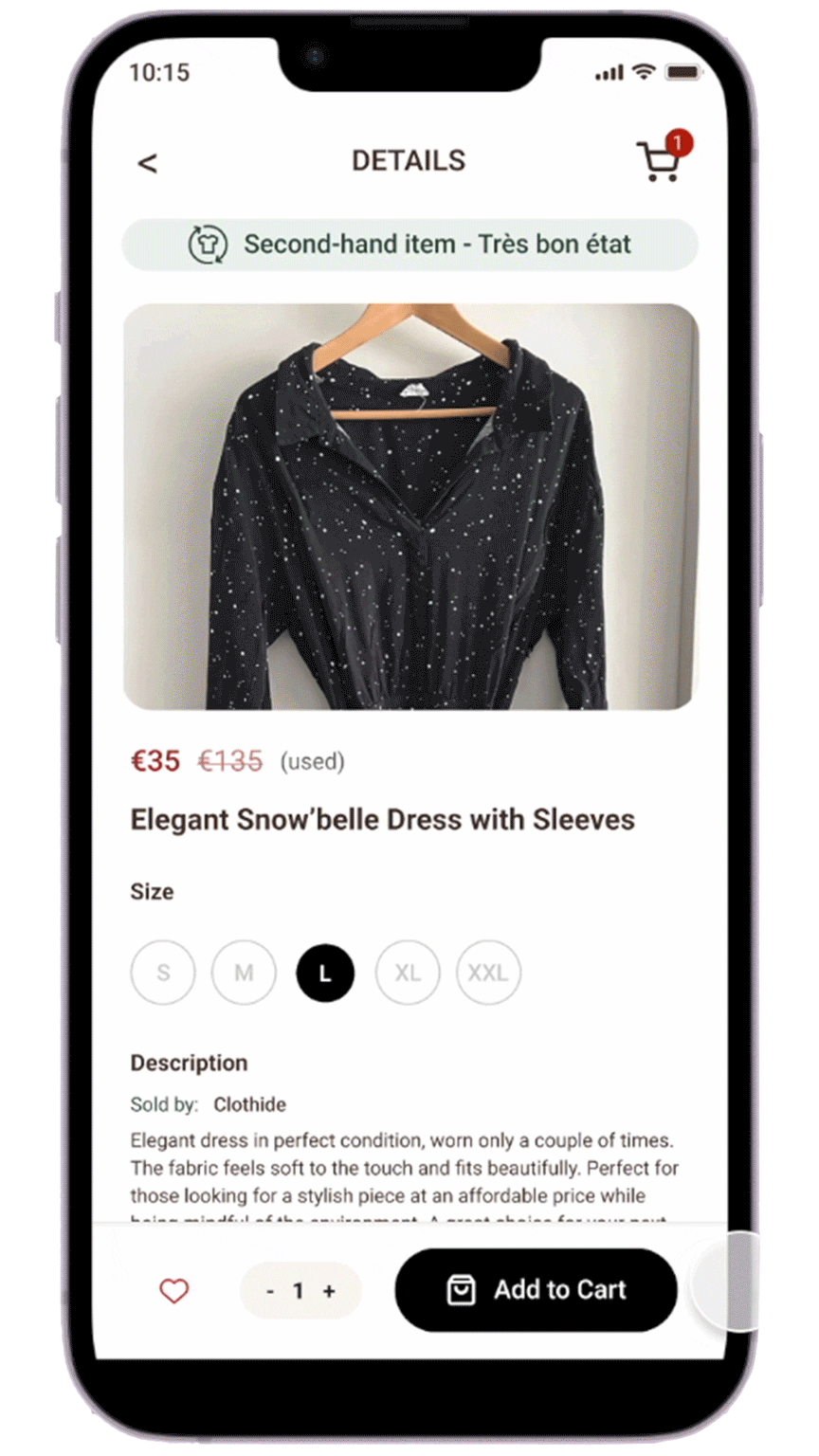 The listing is automatically validated and published on your store alongside your new items, in the “Second Hand” section.