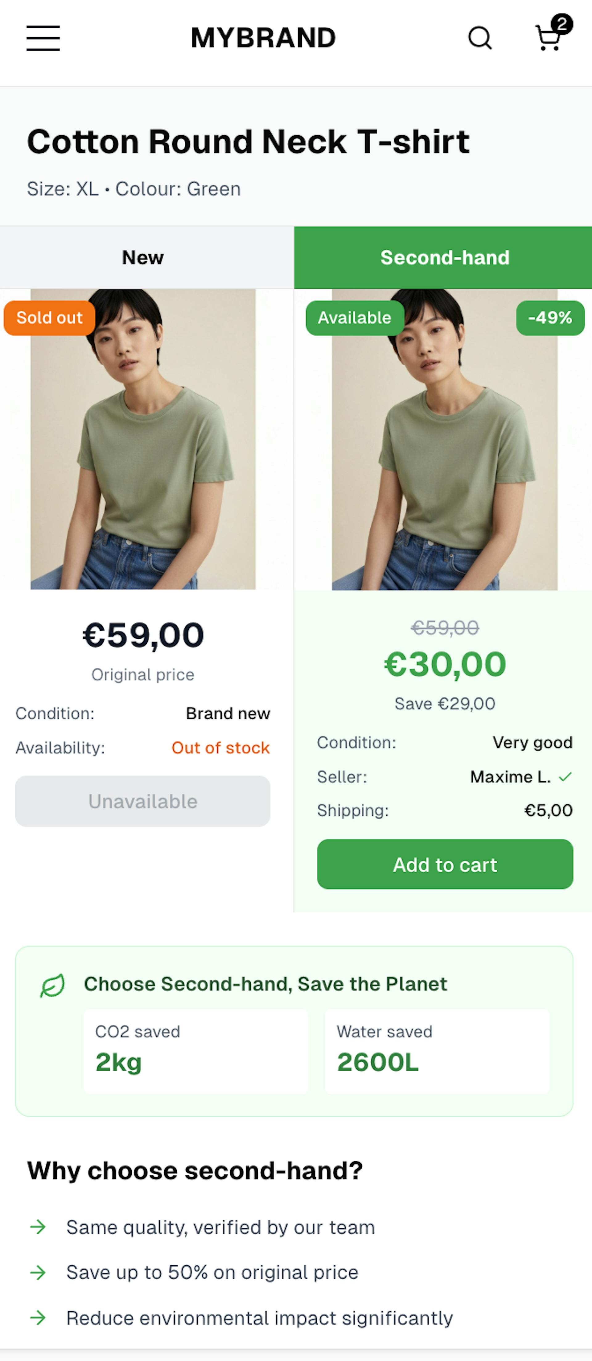 Instant resale : your customers give their products a second life directly from your website, in just a few clicks